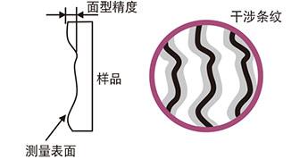 面型精度采用精密抛光表面与理想平面的偏差量来表征。因为使用可以测量波面的干涉仪来测量,所以也被称为反射波面精度。面型精度的干涉条纹数的单位是[λ]。λ是干涉仪所使用的氦氖激光器的波长632.8nm。