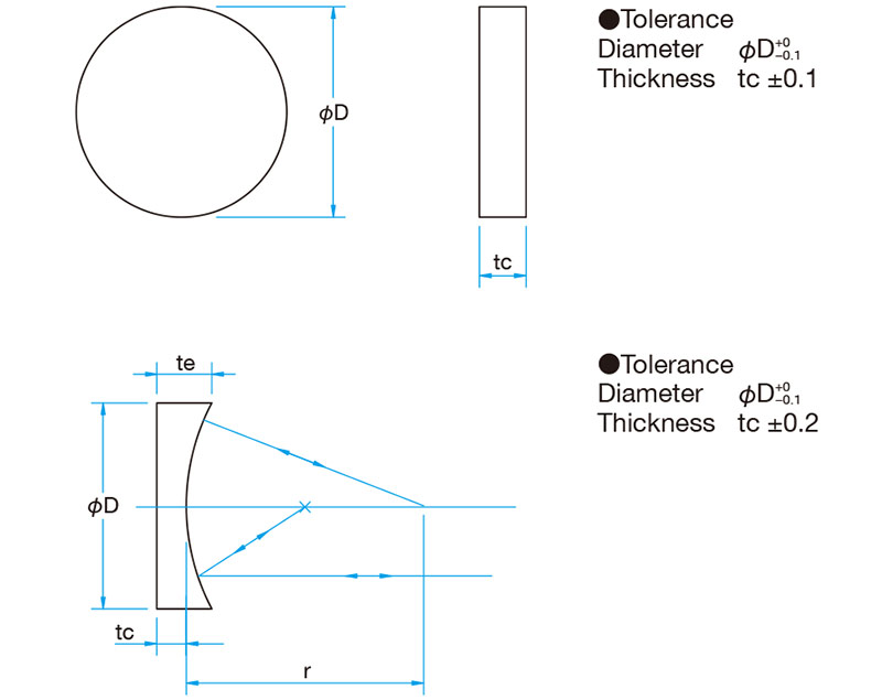 备有平面基板和谐振腔用凹面基板2种形状。