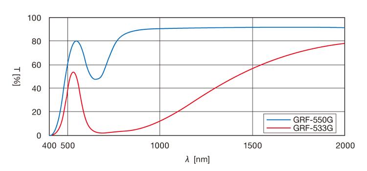 ▶绿色滤光片(GRF)的玻璃特性上,不具有快速截止和高透过率性能。