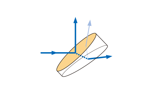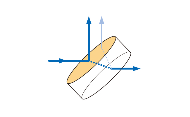 ▶由于基板的折射率和厚度的作用,透过光的光路相对于入射光会平行移动数mm。(楔型半反射镜在平行移动的同时光束大约偏角30分)