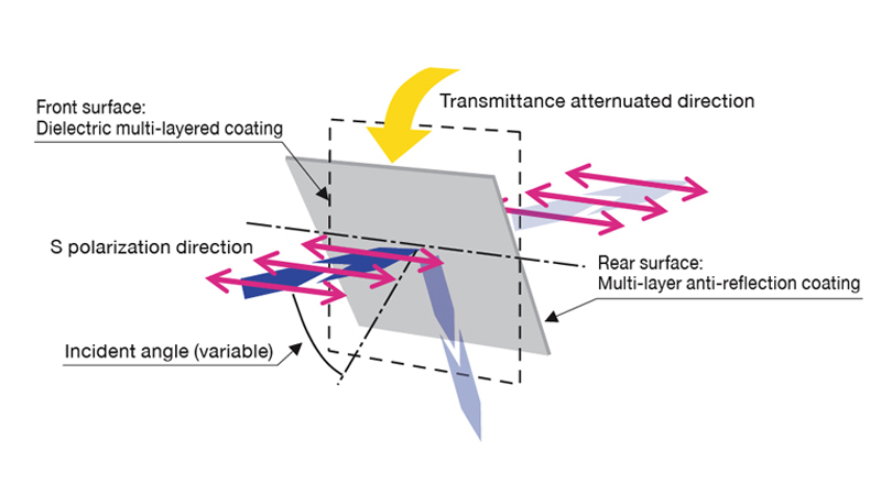 产品简介:通过改变入射角度,改变透过光束和反射光束的光量比例的分光镜。