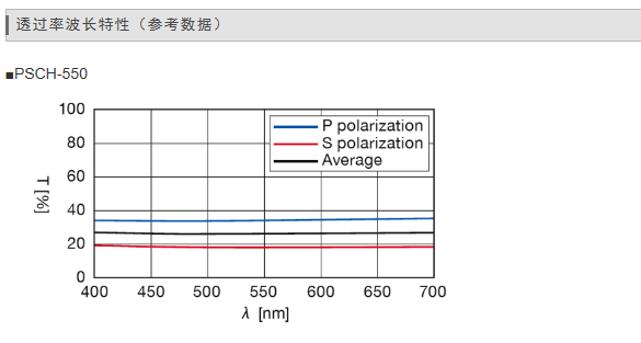 | 透过率 | 平均30±5%(P偏光和S偏光的平均值) |
