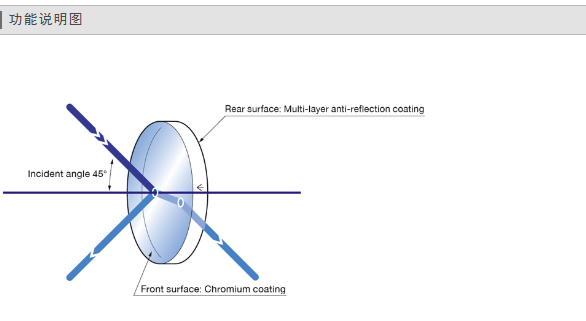 ◦由于是平板型半反射镜,反面镀有防反射膜,不会发生因为落射照明而产生的鬼影(杂散光)。