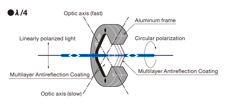 ▶波长板框架受到强烈的冲击时,元件的轴心可能会发生偏差,导致特性变差。