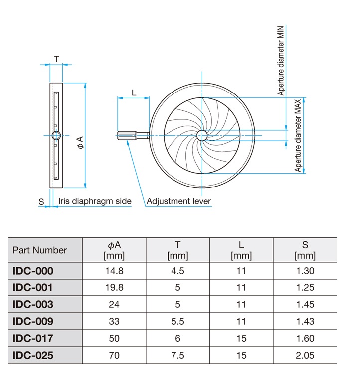 ◦IDC型可变光阑的厚度薄,可在其前后近距离安装其他光学元件