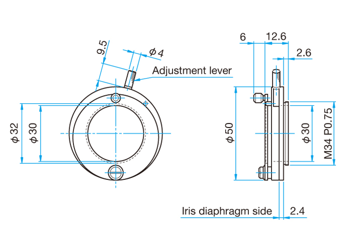 ▶轻轻滑动调整手柄就可以改变光阑的孔径。如超范围调整,或用力过大,或搞错了调节方向的话,可能会折断调整手柄。在安装使用此类精密部件时,请小心。
