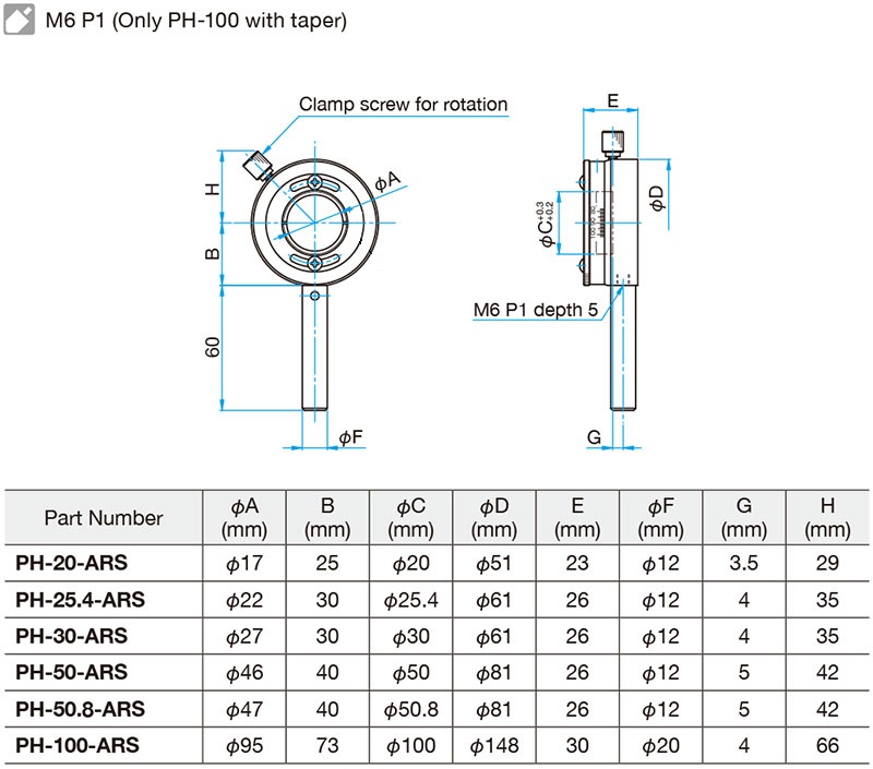 PH-20-ARS/25.4-ARS/30-ARS/50-ARS/50.8-ARS/100-ARS