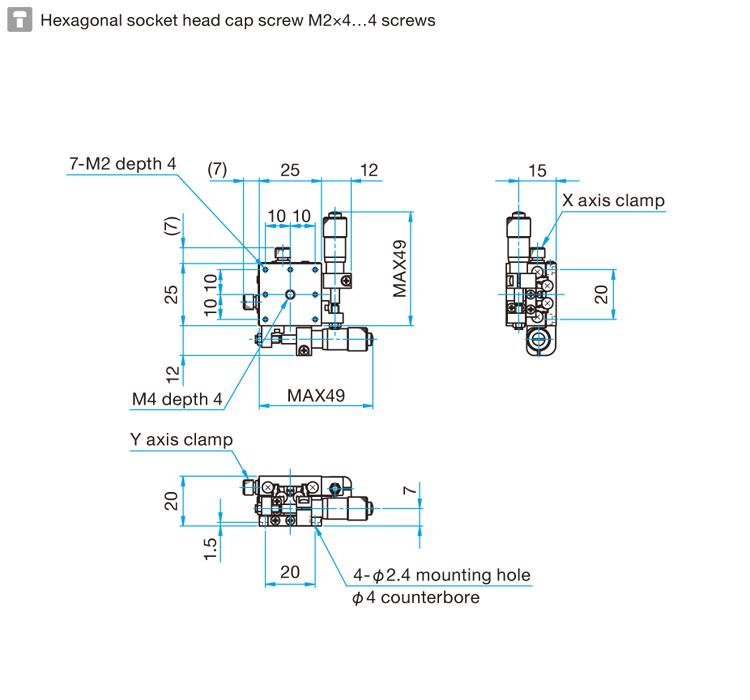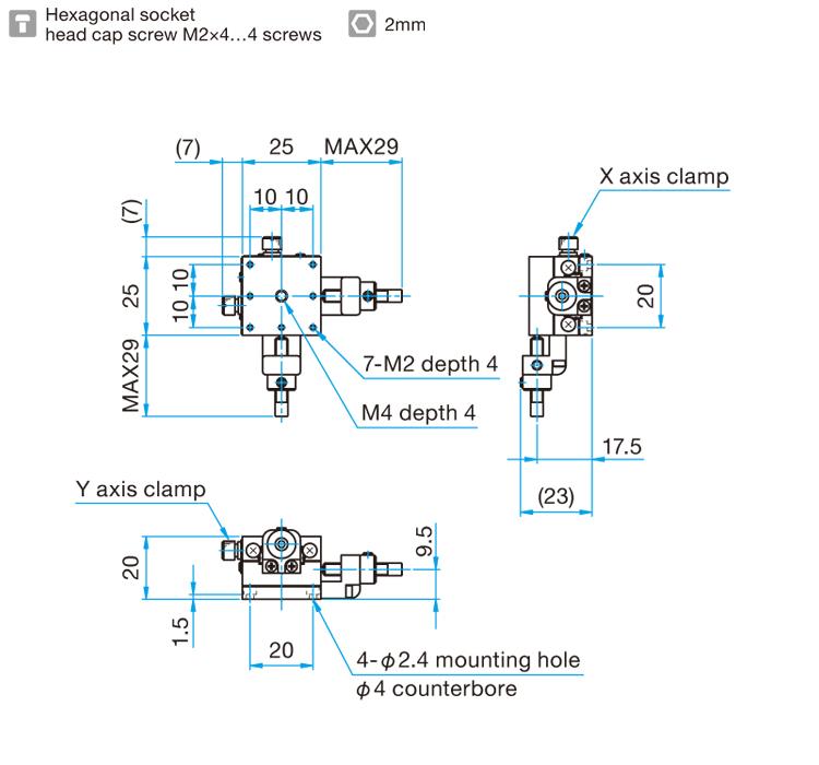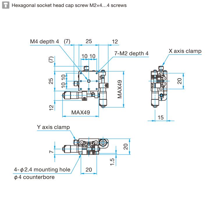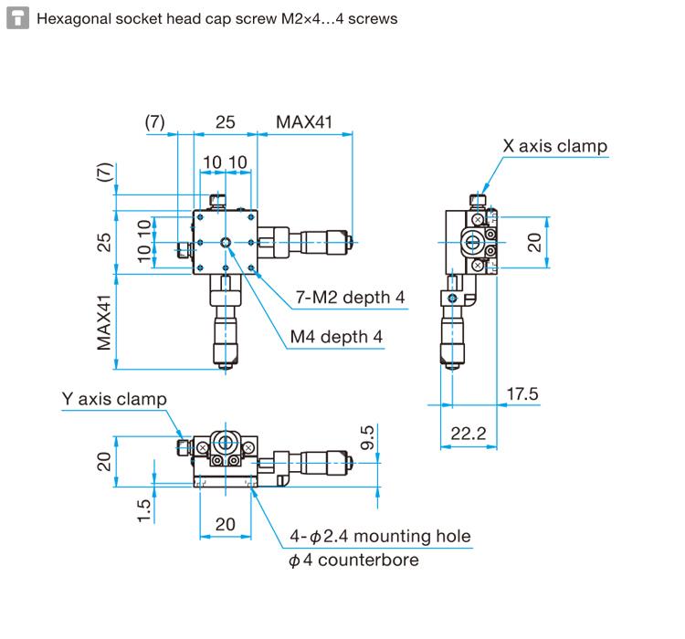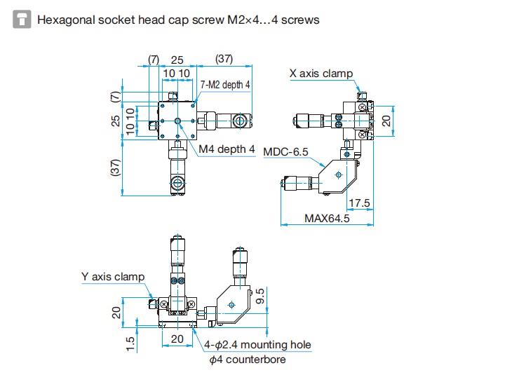 4.型号末尾为FP的产品,采用的是精密调整螺杆,请注意不是一般的微分头。精密调整螺杆的螺距为0.25mm,在操作时请使用六角扳手或另售的六角手轮扳手(KCL)