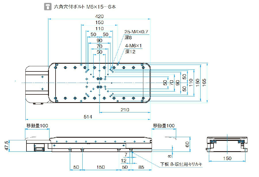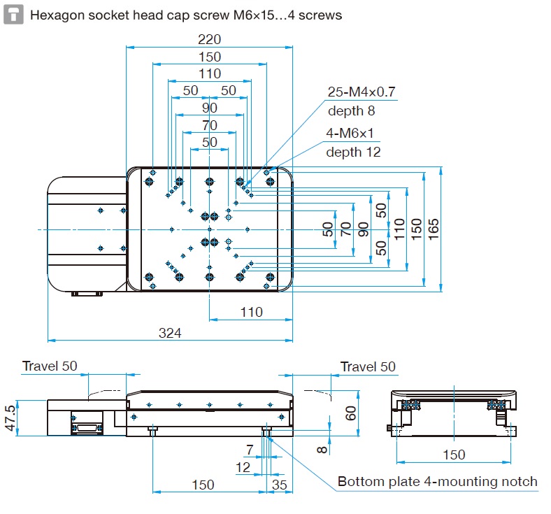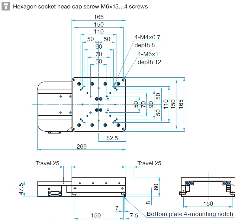 精密自动平台X轴-5相步进电机主要材料为钢材,刚性好,承载能力大。使用了精密滚珠丝杠和精密十字交叉滚柱导轨的高精度X轴平台。和3轴平台控制器HSC-103配合使用、和以前的控制器相比,能实现更低的噪声和振动。